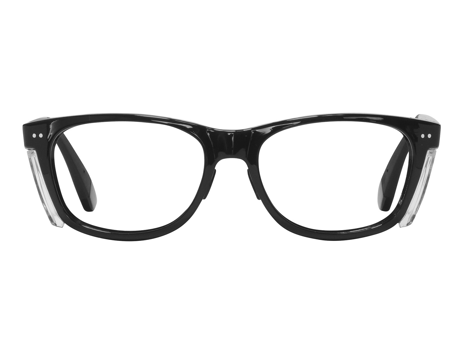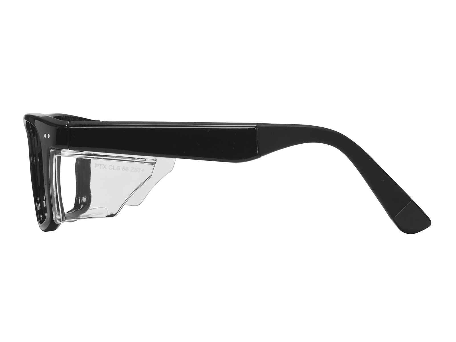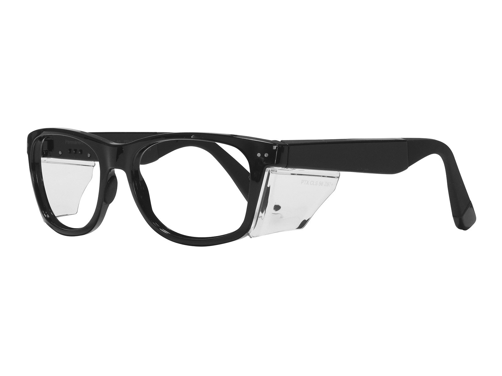 The PENTAX CLASSIC 56 prescription safety glasses feature a durable plastic frame with permanent anti-reflective side shields for lateral protection. Latex-free rubber nose pads and temple tips provide comfort and stability. ANSI Z87.1 certified for impact resistance. Includes a protective case or pouch with every prescription order.